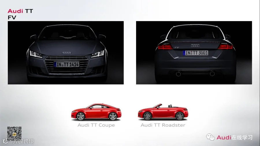 TT车型有两款可以选择,一种是双门硬顶(Coupe),另外一种就是双门敞篷(Roadster),现在均可以在奥迪经销商中看到。