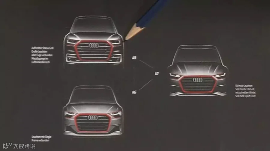 最近媒体上面发布了关于下一代A8的设计草图,图中展示的是A8、A7和A6的前脸,看看有啥不同吗?