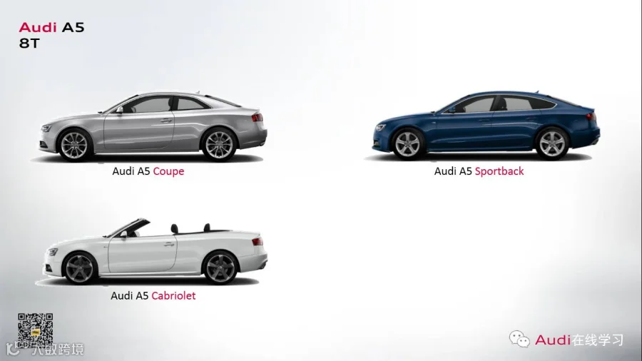 一开始,奥迪先推出奥迪双门跑车(Coupe),接着推出掀背版(Sportback),最后敞篷版(Cabriolet)的A5也来到了中国。
