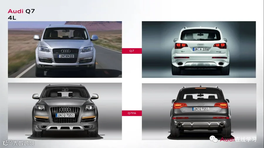 奥迪的车型对于熟悉的人来说应该不会陌生,大体分为三大类:A、Q和R。本文主要适合刚刚接触奥迪或者想要了解奥迪的同行,希望能够有点帮助,更好的认识奥迪车型特点。下面主要以车辆的前脸和尾部来进行介绍。