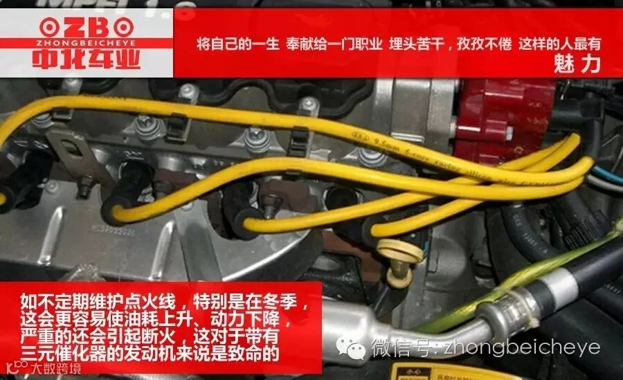 点火线的老化和破损会使点火能量大幅度降低,如不定期维护点火线,特别是在冬季,这会更容易使油耗上升、动力下降,严重的还会引起断火,这对于带有三元催化器的发动机来说是致命的。此外,点火系统中的分电器盖、分火头、点火线圈、火花塞插头等部件也应在例行保养、检查范围之内。