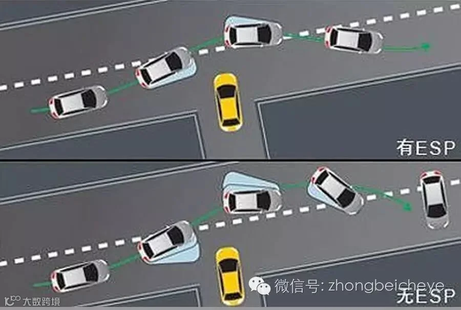 ESP的中文名叫做车身电子稳定系统,也就是说车辆在经过摩擦力较小的路面时,轮胎打滑导致车辆的运动方向和速度无法受驾驶者控制时,ESP就可以通过对没有打滑车轮进行制动干预,从而帮助驾驶员恢复对车辆的控制,来保证行驶安全。