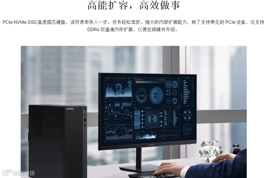 远海政企精选华为新品——小型化智慧商用台式机——MateStation B515,新一代MateStation B515“机身小巧,性能强大”,只有传统机箱1/3的大小,但却具有驱动企业级应用程序的性能。