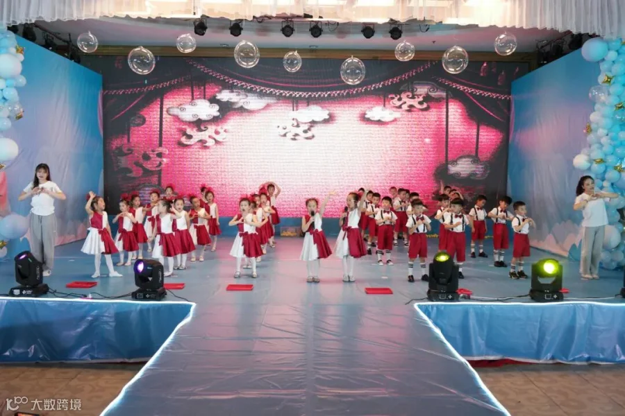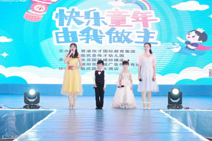 孩子们在舞台上快乐的唱歌