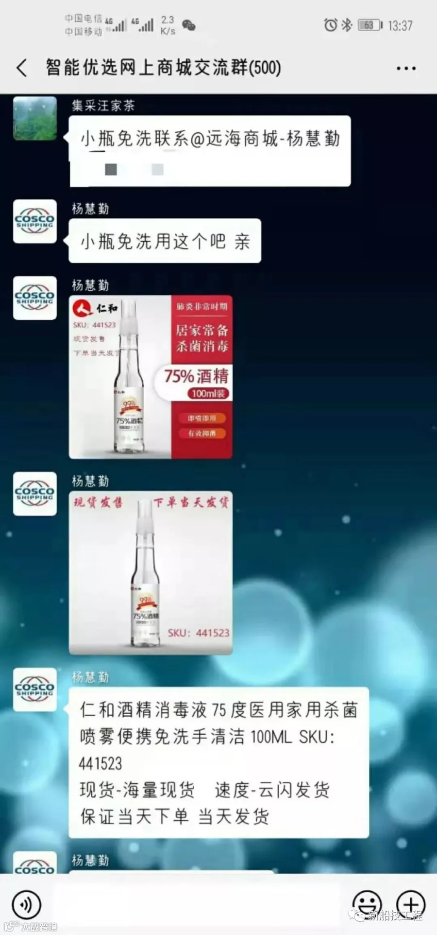 线下,自从接到公司防控领导小组关于采购防疫物资的指令,电商贸易部团队便全力以赴开拓渠道,配合中远海运特运做好一系列防疫物资的采购工作,在复工前实现口罩、消毒液、酒精棉球等物资的全部到位,为中远海运特运、船技工程提供了最坚实的物资保障。