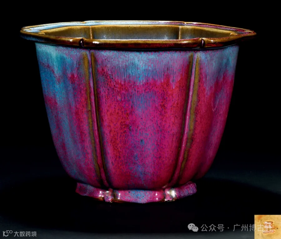 明早期 钧窑天蓝玫瑰紫釉葵花式花盆