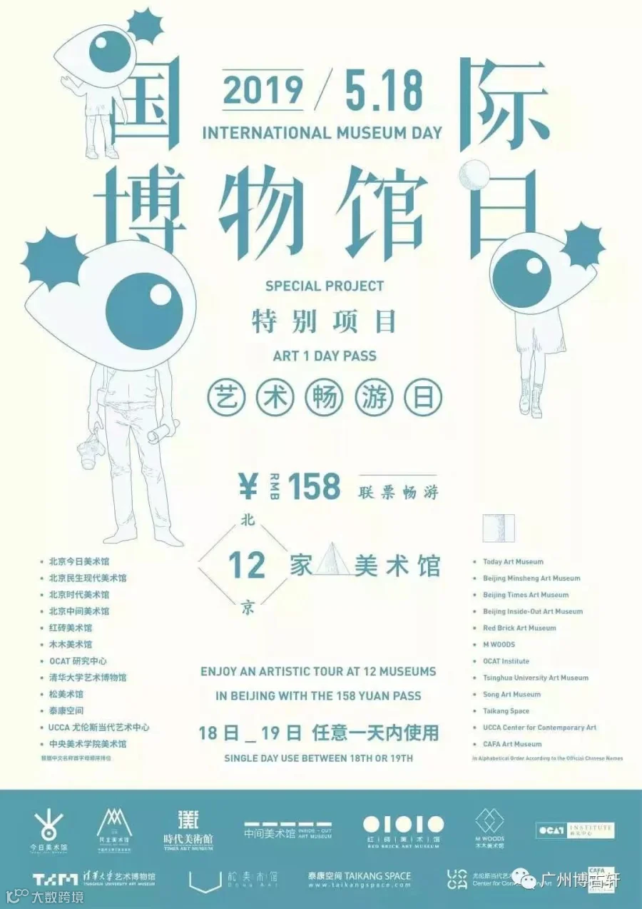 在这个周末,12家艺术机构将联合举办了“ART 1 DAY PASS”艺术畅游日活动,此次活动是由红砖美术馆发起,包括北京今日美术馆、北京民生现代美术馆、北京时代美术馆、北京中间美术馆、红砖美术馆、木木美术馆、OCAT研究中心、清华大学艺术博物馆、松美术馆、泰康空间、UCCA尤伦斯当代艺术中心、中央美术学院美术馆(根据官方中文名称首字母排位),共12家艺术机构首次联合推出的2019年国际博物馆日特别项目,观众持艺术畅游日电子联票,可在5月18日或19日参观12家美术馆,体验一日艺术畅游。想在一天内尽可能的看够,可要提前规划一下啦~