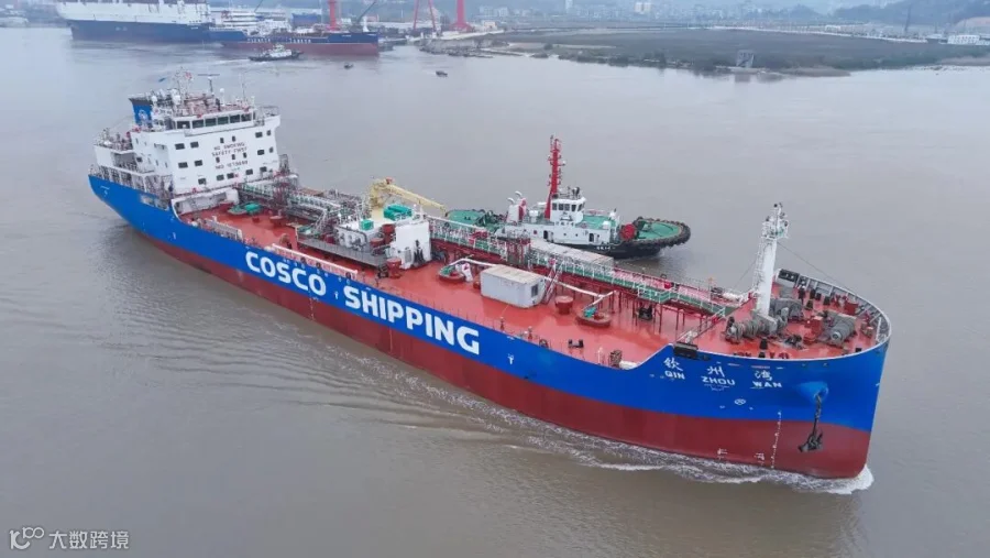 “钦州湾”轮总长119.8米、宽21.2米、型深11.2米,设计航速13节,续航能力12000海里,是节能环保的绿色智能船舶。该船入级CCS船级社,无限航区,船舶采用全新低阻力船体线型,搭配多重节能装置,能效与减排达行业先进水平,满足 IMO Tier III 氮氧化物排放标准;货油舱区为双壳单底,共两个货油鑵体,每个独立式货油舱再由纵横垂直槽型舱壁分隔为四个货油舱,共8个货油舱;货舱经特殊设计,可安全承运沥青、闪点大于 60℃的成品油、II 类化学品等多种液货,满足客户多样化需求;该轮配备先进的航行与监控系统,显著提升了船舶的安全管控与运营效率,推进系统采取二冲程主机驱动固定螺旋桨的推进方式,配置轴带发电机,冰区B级要求。