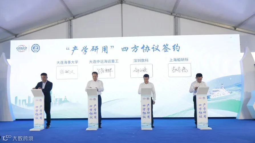 发布仪式上,深圳中远海运数字科技有限公司、大连海事大学、上海船舶运输科学研究所有限公司、大连中远海运重工有限公司四方签署智能船舶通讯导航装备研发“产学研用”创新联合体框架协议,构建“产学研用”深度融合的协同创新体系。