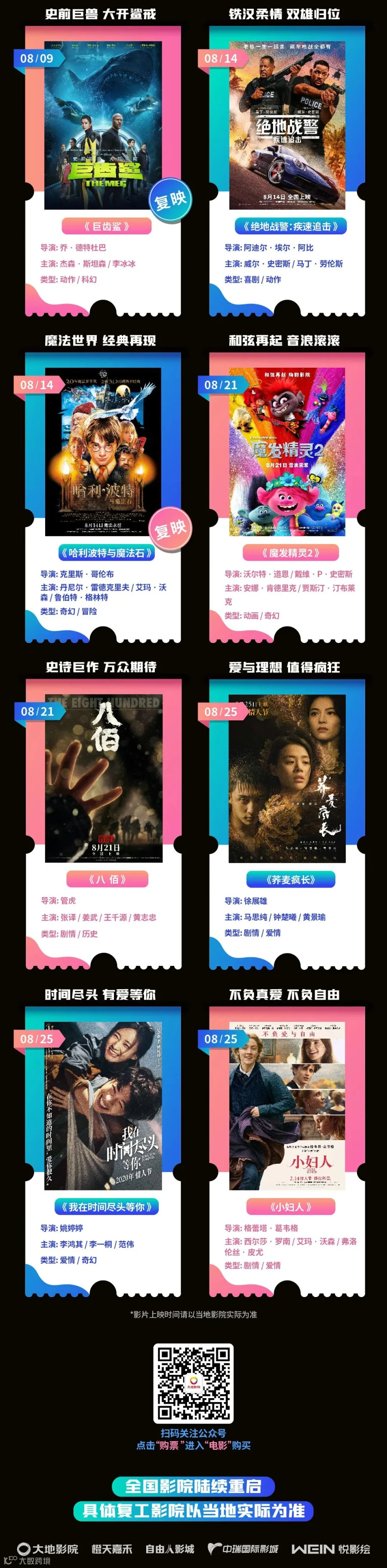 以下,大地君为大家献上的8月影讯图。赶紧来看一看,有什么电影是你想看的?