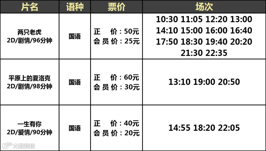 【大地影院中北世纪城店】12月4日(周三)影讯