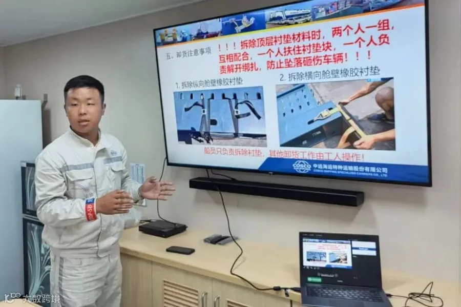 高翔是公司港航服务部绑扎现场主管,是一名退伍军人,他始终以“零失误”标准严控作业质量。工作中,他始终秉持军人本色,坚决服从命令,面对困难挑战迎难而上,与团队并肩作战出色完成任务,在10天7船舶8000辆商品车的绑扎任务中,他就是其中一员;面对密集船期,他曾连续72小时驻港攻坚,带领团队创下当时作业量新高;为拓展宁波港、上海港新业务,他主动请缨对接码头优化流程,并通过系统培训提升当地绑扎队伍作业技能;在框架箱业务开展初期,他登船对船员开展绑扎培训,推动船岸协同能力;在船舶绑扎中,他时刻监督绑扎及防火安全,保障船舶作业“零差错”;他要求合作方优先使用船舶回收可循环材料,通过标准化检查,确保材料性能达标,实现安全与成本双控目标。他用专业能力为业务发展保驾护航,以奉献精神树立标杆,成为了青年职工的榜样典范,他也荣获“2023-2024年度中远海运特运青年岗位能手”荣誉称号。
