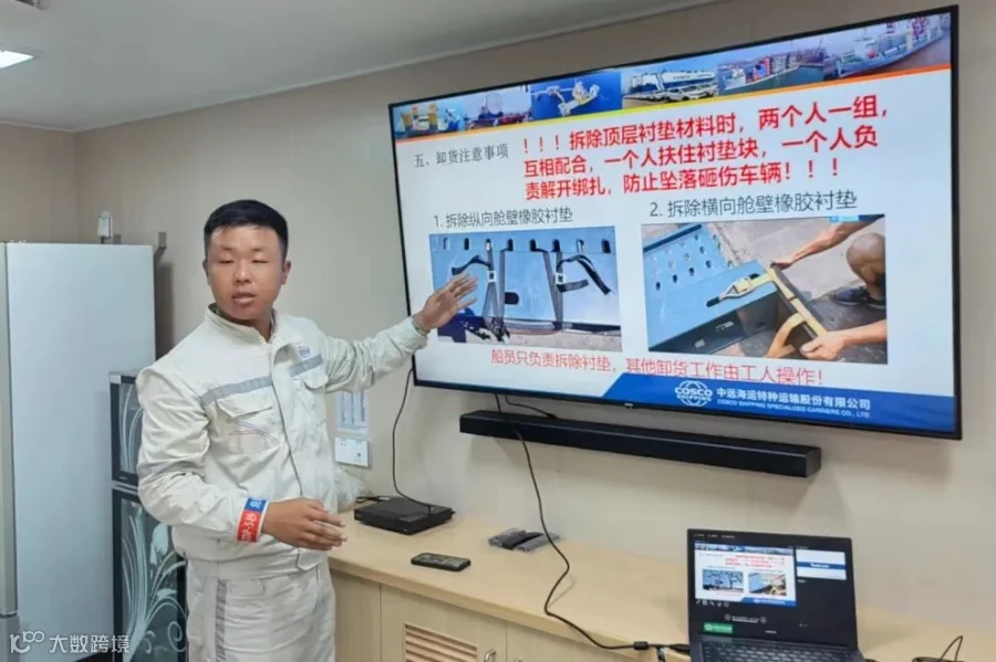 港航服务现场团队以安全生产为首要任务,同时兼顾降本增效,展现出卓越的团队实力。在安全生产方面,团队积极组织绑扎作业培训与安全宣贯,定期开展内部学习以提升技能和安全管理水平;督促绑扎服务商强化一线队伍培训,从源头保障作业安全。在作业现场,团队严格把控各环节,监督船前会、装前会落实,检查劳防用品和消防设备,重视热工作业监管,及时制止不安全行为,消除安全隐患。同时团队创新管理机制,通过隐患自查与不定期突击检查,加强现场安全监督。在沟通协作上,团队与码头、船长、船舶建立密切联系,深入理解作业方案,制定应急预案,合理调度安排,实现安全生产与船期效益双赢。此外,团队协同多部门专家优化绑扎方案、研发新材料,强化安全,降低货损和成本,提升效益。