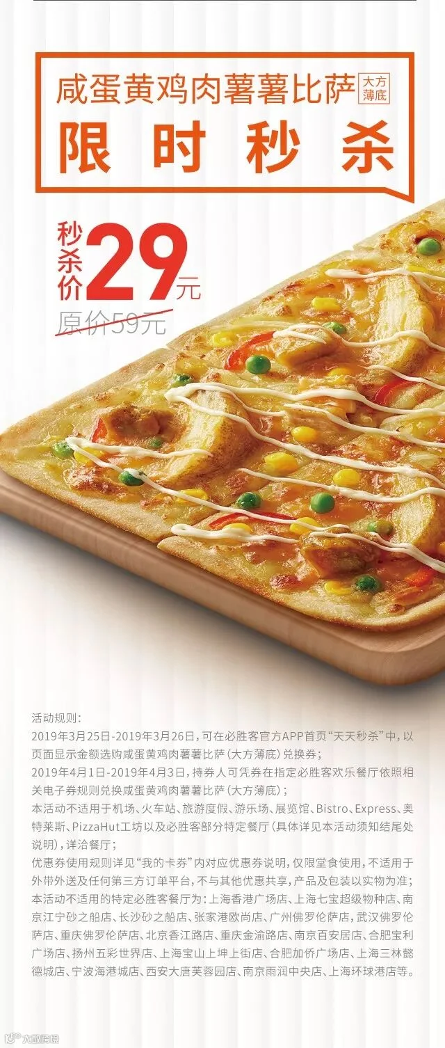 必胜客咸蛋黄季登录倒计时|比萨29元限时秒