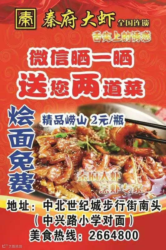地址:中北世纪城步行街南头秦府大虾餐厅。