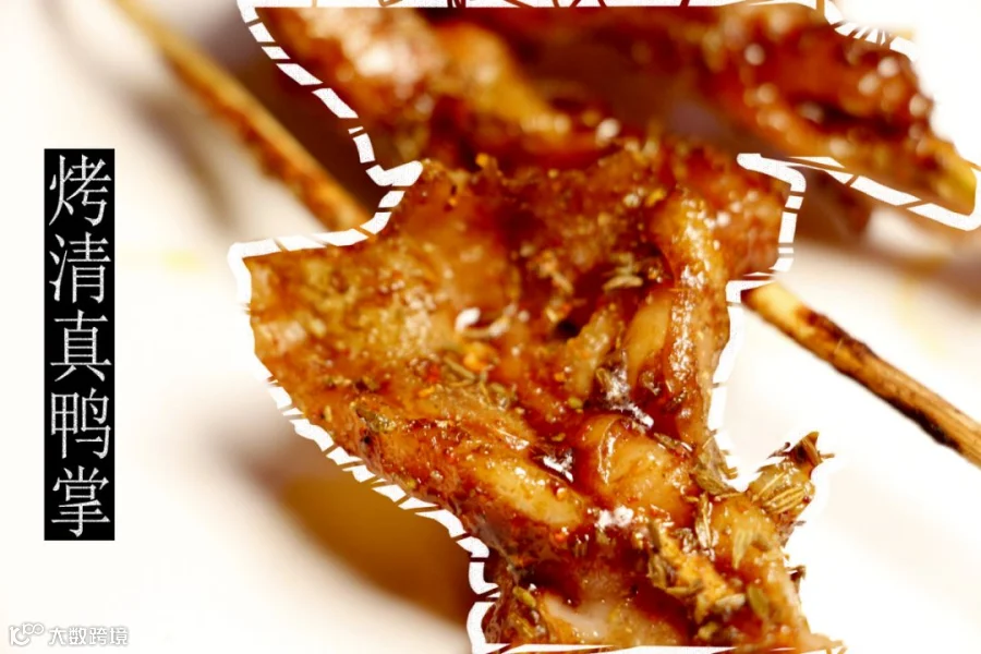 这是一道不同凡响的鸭掌,首先它做到了脱骨,留下可以直接食用的鸭蹼,烤制之后的鸭蹼完全脱离了你对烤串的所有印象。