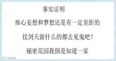 “我要策马奔腾仗剑天涯,在江湖上留下名声,然后隐退在一个秘密花园里与她度过余生”