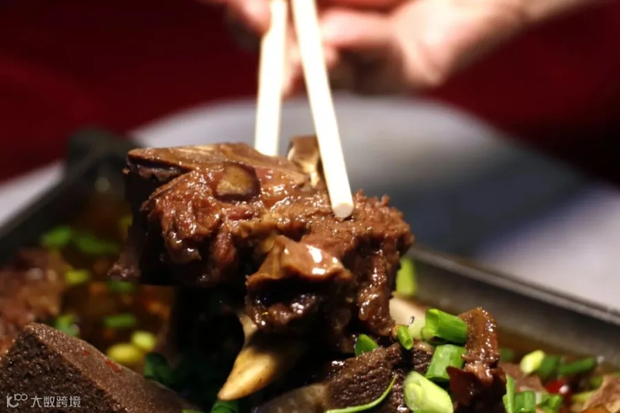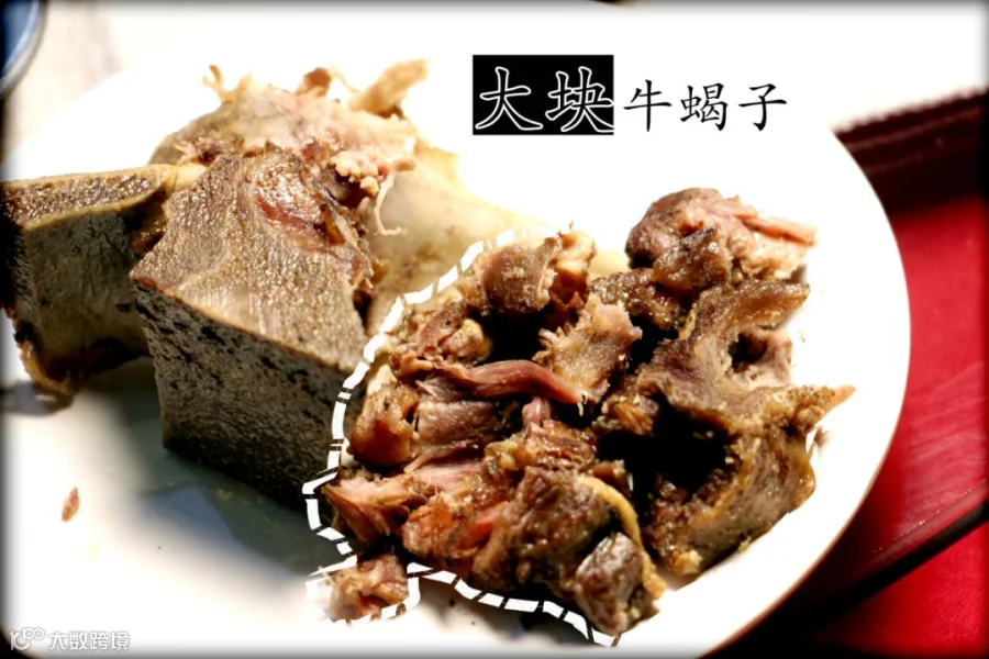 撕下来的牛肉纹理清楚,咬起来弹性十足,咀嚼的时间越长牛肉的香味越浓,牛肉的香味带着骨髓的浓香,尤其是骨头之间的软骨,回味无穷,令人欲罢不能!