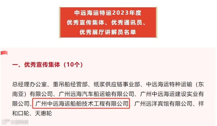 公司连续4年荣获中远海运特运“新闻报道优秀集体”称号