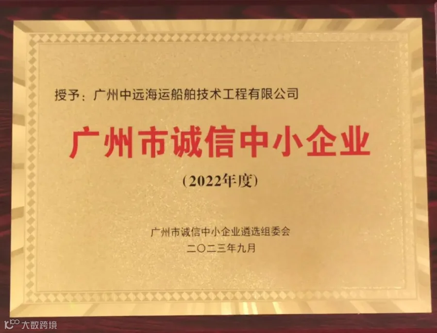公司荣获2022年度“广州市诚信中小企业”荣誉称号