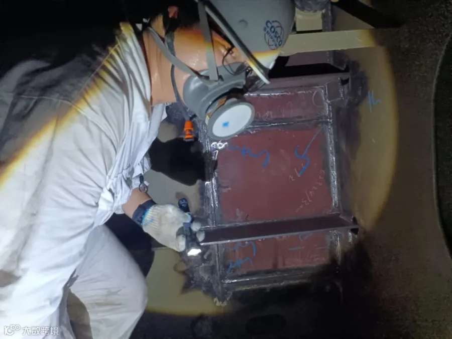 台风预警解除后,为抢回延误的三天工期,我司工程技术人员迅速组织各相关人员沟通调整作业计划,加班加点核对检查加强结构装配、焊接成型、打磨质量等各个环节工作,做好集装箱底座定位装配、复核底座水平、焊接成型、打磨质量、油漆膜厚报验及货舱完工试箱、清洁等报验工作,最终在规定的时间内完成所有项目工程,通过了船级社和船方检验,成功交付使用,为融入特运公司“三核三链”战略,服务好航运主业做出了船技工程应有的贡献。