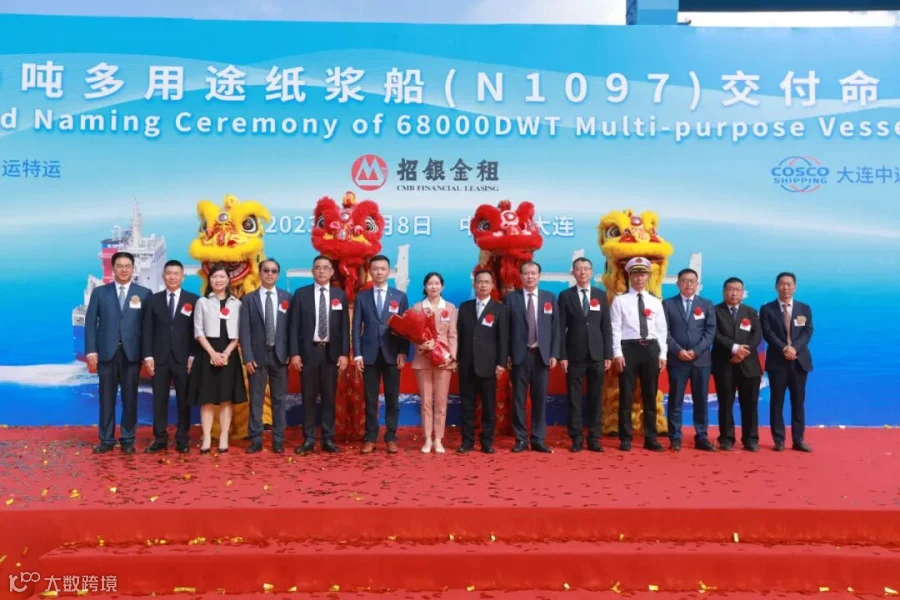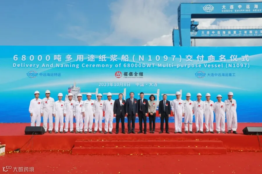 中远海运特运、招银金租、大连中远海运重工、船技工程等相关单位的领导和嘉宾出席了交船仪式。教母孙淑云女士为新船命名。