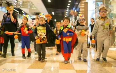 组织小朋友在中北世纪城化妆和穿着万圣节元素的盛装进行巡游