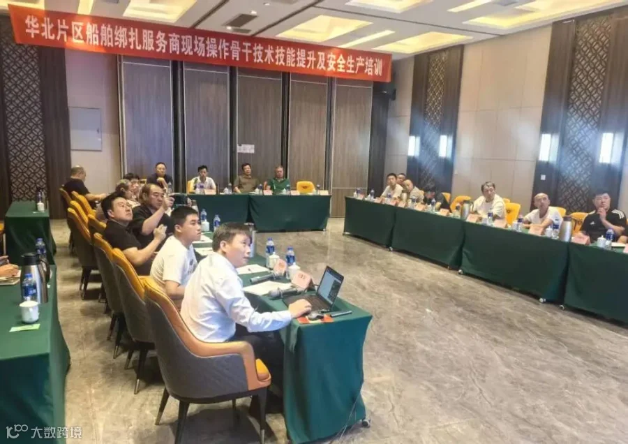 当天下午,会议组织开展了“2025年华北片区船舶绑扎服务商现场操作骨干技术技能提升及安全生产培训”。培训围绕船舶货物绑扎安全与绑扎技能展开,结合特运船舶特性、分析近年船舶典型安全事故案例,明确绑扎安全的关键点与防范措施。特运安全督导员结合多年工作实际分享船舶绑扎作业安全生产操作经验,针对高温等特殊天气下船上绑扎工作存在的安全隐患以及应对措施,提出了个体防护、教育对策、管理对策和技术对策等“四项安全防护对策”和具体安排,固化经验,凝聚共识,推动建立规范化、标准化管理。