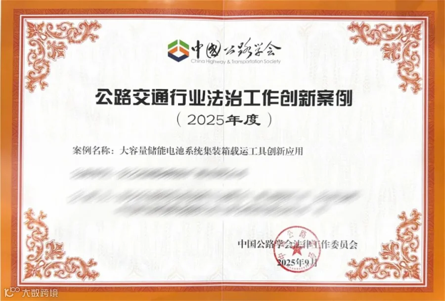 近日,中国公路学会法律工作委员会正式公布了95个“2025年度公路交通行业法治工作创新案例”,由供应公司、安之达物流联手打造的“大容量储能电池系统集装箱运载工具创新应用”项目成功入选。