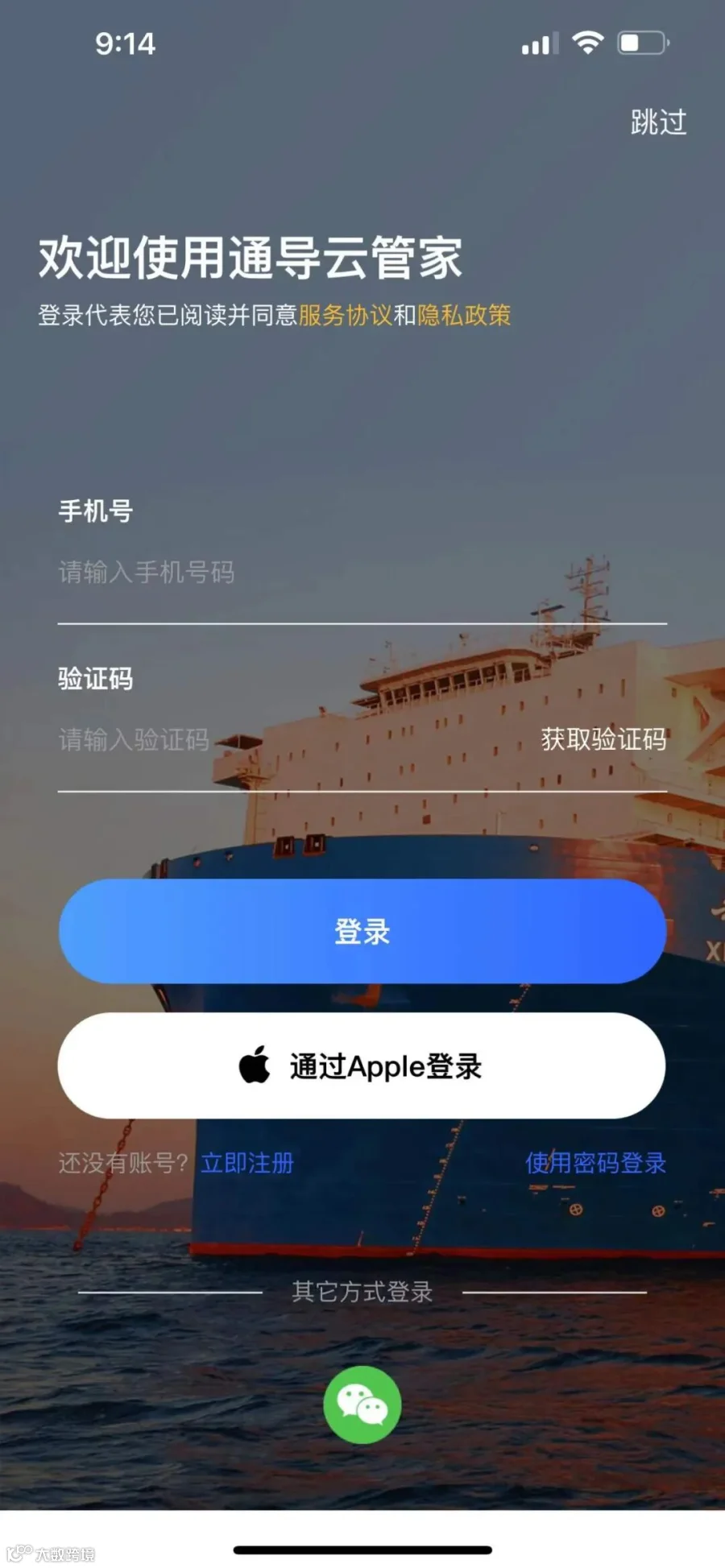 或通过微信和Apple id授权注册