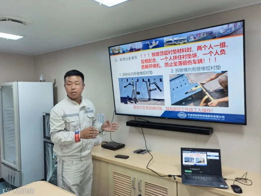 2022年8月18日,对供应公司来说是一个不平凡的日子。这一天,“中远海运智慧”轮首航下水,这艘62000吨多用途专业纸浆船使用中远海运特运自主创新研发的“可折叠商品车专用框架”,顺利装载1100多台商品车,开启前往南美的首航之旅,标志着公司对接特运“三核三链”战略发展,拓宽船舶绑扎业务迈出重要的一步。