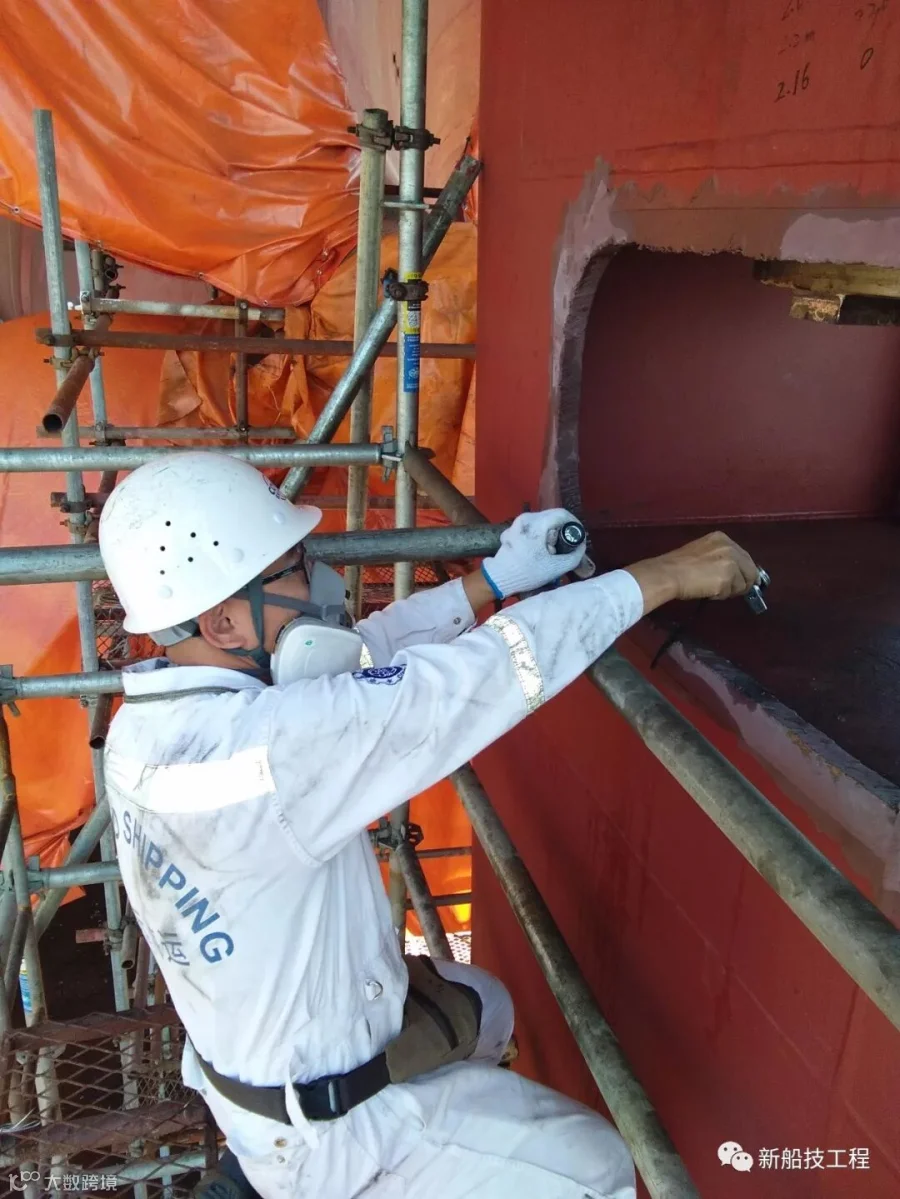 2019年4月21日,“大德”轮拉尾轴时船厂不小心碰坏了尾轴中间段与艏铜套之间过渡的防氧涂料,这种加拿大提供的涂料在大连当地无法找到,只能借用62k纸浆船的材料。但纸浆船的尾轴在江苏靖江制作,涂料不能走空运,陆路运输需等待三日,而在修船这种紧急状况下是无法等待三日之久的。为此他多处询问,获悉后续纸浆船有一批涂料在大连海关,还没有清关送江苏,于是托人及时办理清关调出一部分涂料供修船用,避免了耽误船期。