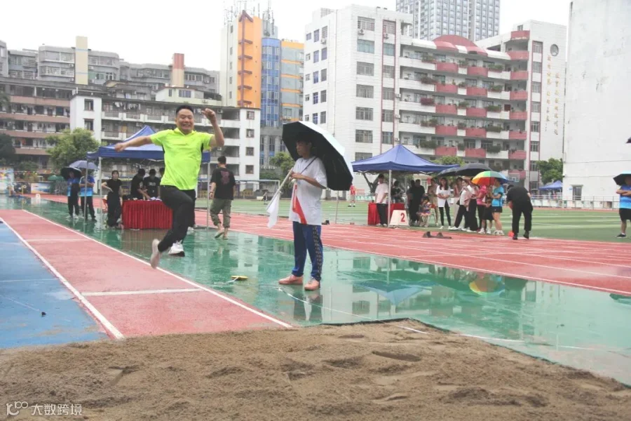 下午1点半,各项田径比赛项目正式拉开帷幕。虽然天公不作美,下起了绵绵细雨,但丝毫不影响大家的参赛热情。赛场上,参赛选手各个精神抖擞,兴致高昂,尽情在赛场上挥洒自己的汗水。起跑、加速、冲刺,站定、跃起、腾空、落地,他们用速度、高度、力度诠释“更快、更高、更强”的体育精神。赛场外,鼓舞、激励、指导、加油、欢呼、同乐,大家以另一种方式融入激烈的竞赛,享受比赛的欢乐。