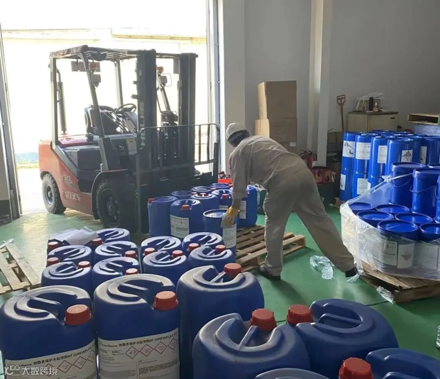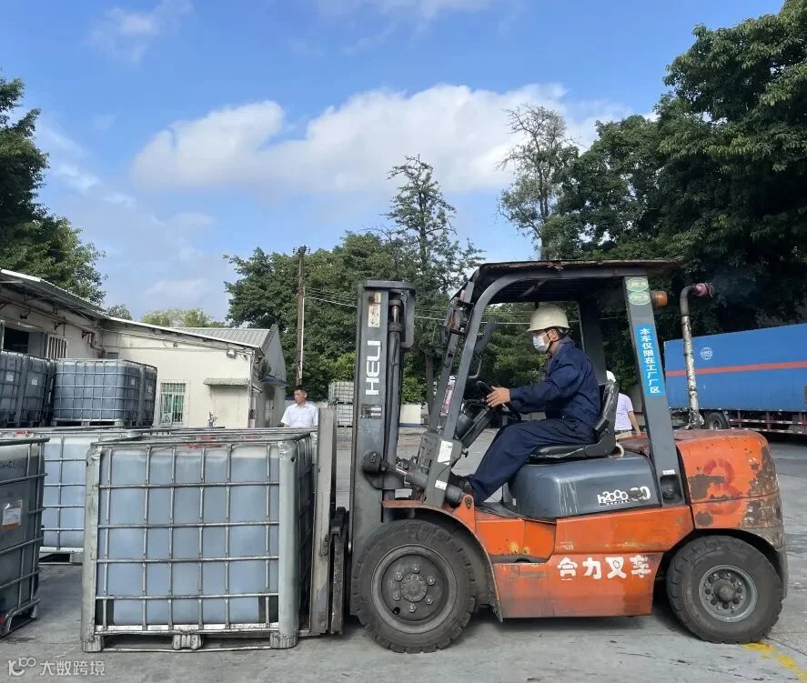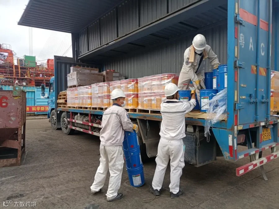 上午8:30,代理/物流部送料员、仓管员正在核对订单和出仓产品数量,装车运输吨箱机油到南沙沙仔岛。