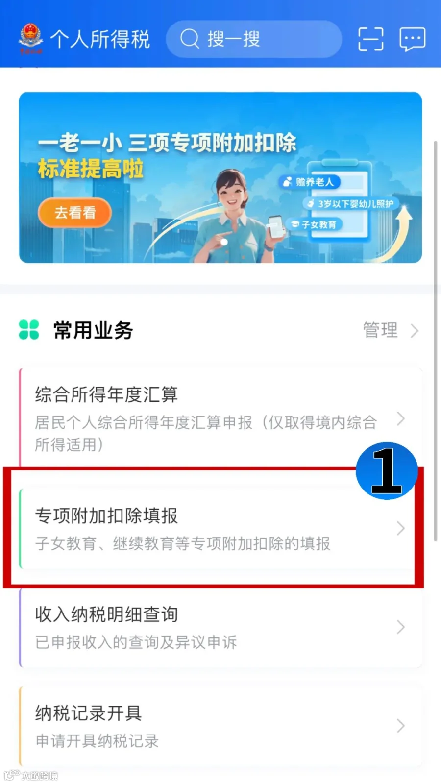 下载并打开个税APP,点击【专项附加扣除填报】模块;