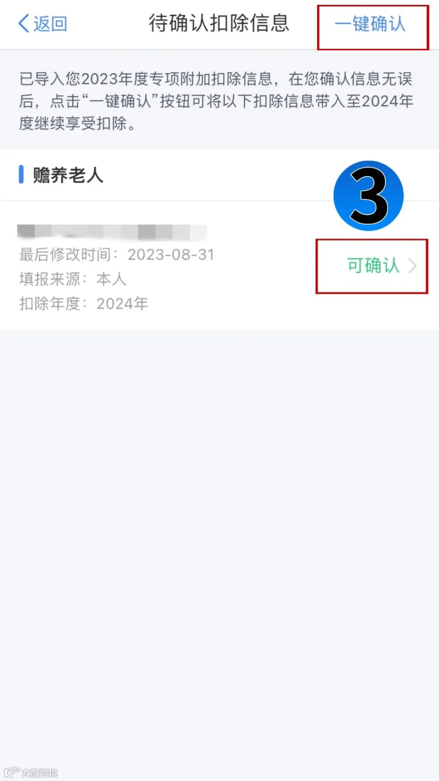进入待确认扣除信息界面,点击【可确认】,核对信息后,点击【一键确认】即可完成提交。