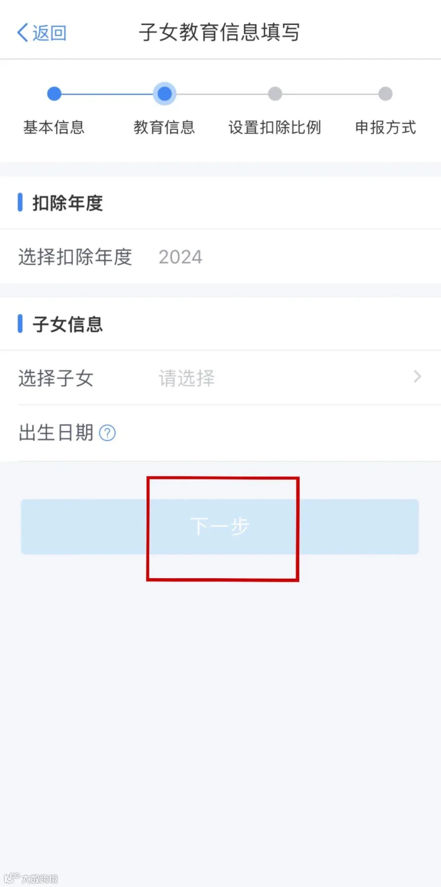 根据实际情况选择和录入子女教育信息,根据系统提示点击【下一步】,一步步填写资料,最后【提交】即可。