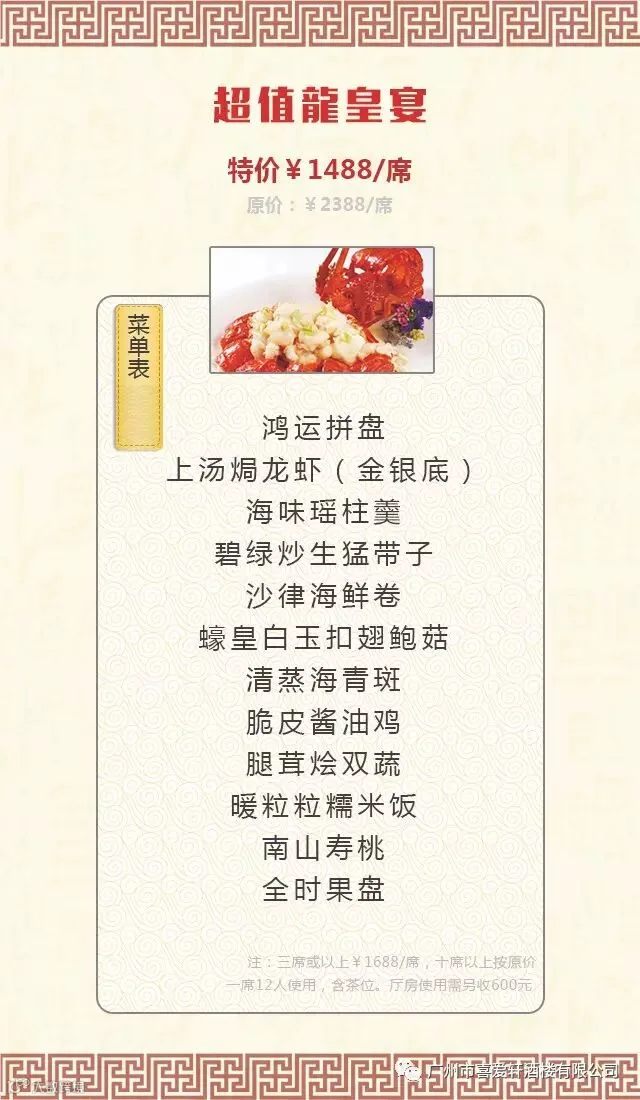 价值¥2388/席的超级龍皇宴