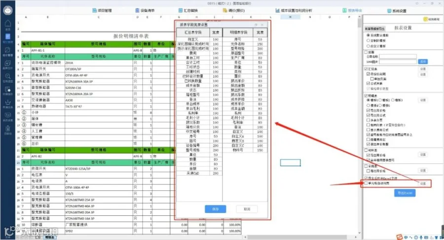 选择成本金额等于面价,只在面价进行手输,即可反应在报出和成本两边,无需输入两回;且报出与成本均会随面价变动而变动。