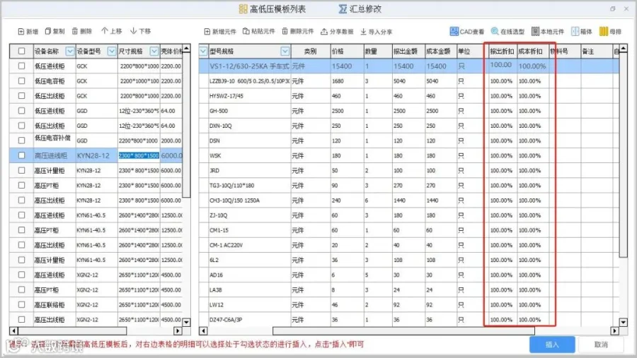 可以在模板里直接设置报出和成本,插入后无需再调整报出和成本。