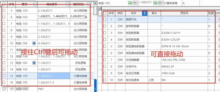 设备清单也可拖动箱柜行,但需要同时按住“Ctrl”键,方可拖动。