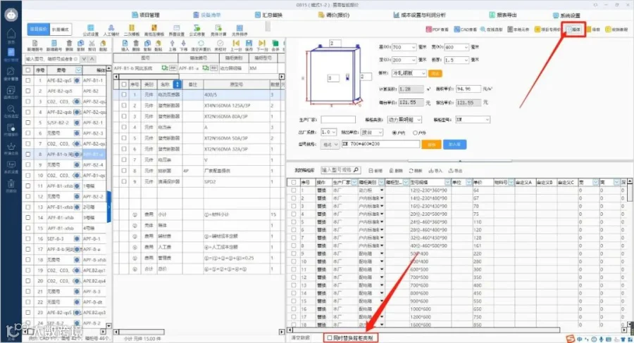 不勾选【同时替换箱柜类别】则只替换壳体,不修改箱柜类别。