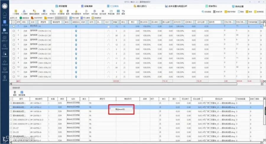 汇总替换界面,下方明细来源,增加右键功能“导出Excel”。可得到包含该元件的箱柜名单