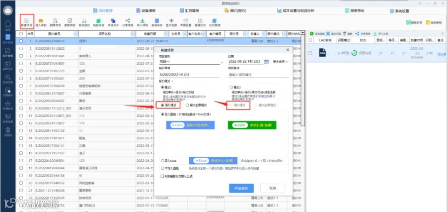 需要手动填入人工费用和辅材费用的用户,在选择报价模式一还是报价模式二的时候请选择【面价】模式哦~