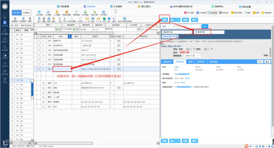 算易智能报价上一个版本发布以后,算易报价研发团队聚焦客户应用场景,对【人工辅材公式设置费用】,【表格排序】和【箱柜库设置】等功能也在不断持续迭代优化,并新增【元件排序】等功能~