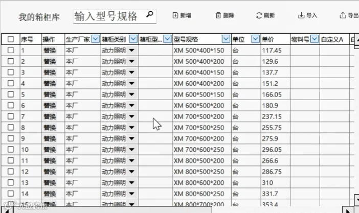 在算易智能报价软件中,“箱柜功能”可方便成套厂商在套配电柜清单时,彻底告别手动计算箱体尺寸、数量的繁琐步骤。