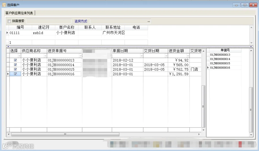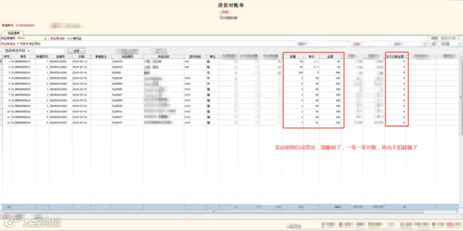 一键查询筛选选定相关供应商的订单情况,对账轻轻松松,明明白白,清清楚楚,再也不怕丢单导致的缺漏了。