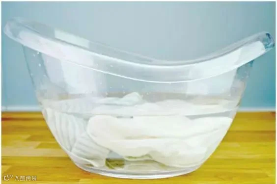 方法一:将小苏打泡在温水里,直至溶解,然后把衣服泡在水里8小时,再用清水洗净,衣服就柔软白净。