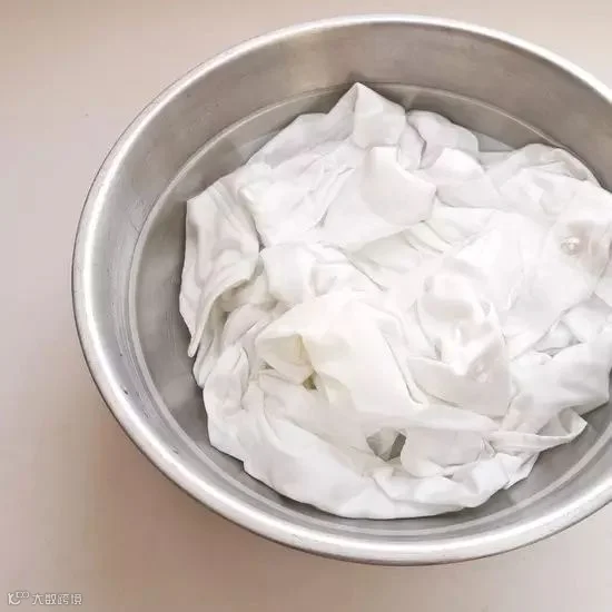 首先,在盆中放入清水,把衣服简单清洗一次,重点部位用洗衣粉或洗衣皂洗干净一些。