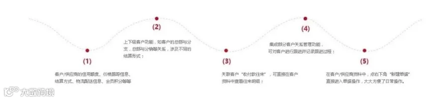 软件中设计了除常规的客户资料之外,还在面板中集成了很多相关的特色功能,如:
